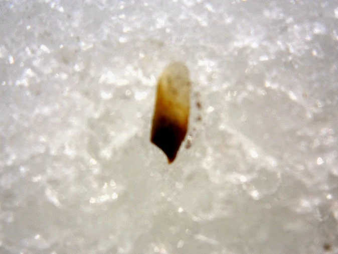 だんだんと残雪が融け出したら、残雪の中からたくさんの落ち葉と種子があらわれた。