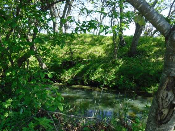こちらも、丸太柱看板が建っていて、明確な堀と土塁が確認できた。