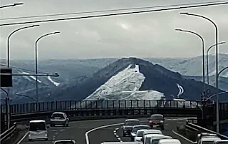 朝、仕事に向かう途中の八甲田大橋から、うっすらと雪をかぶったモヤヒルズが見えた。